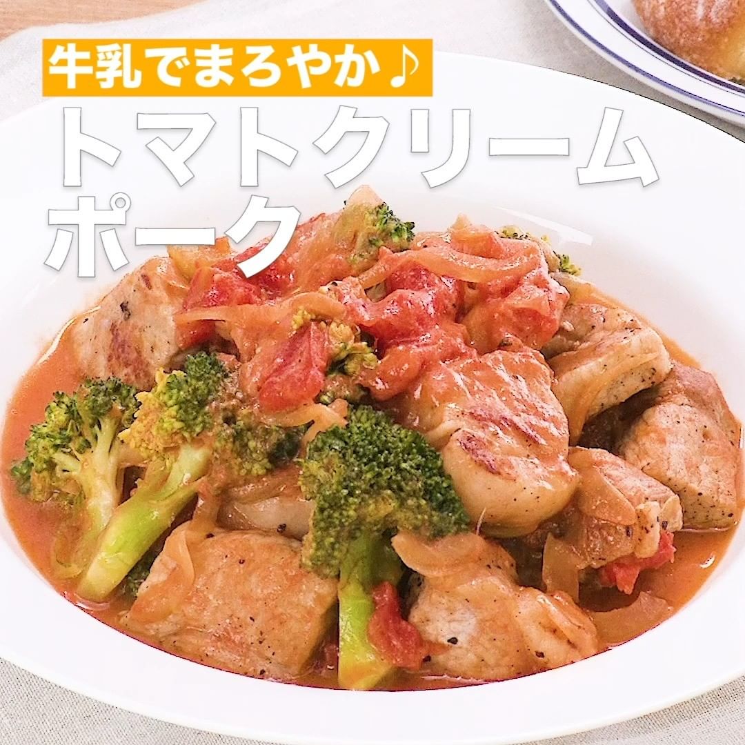 ⑤<牛乳でまろやか♪トマトクリームポーク>