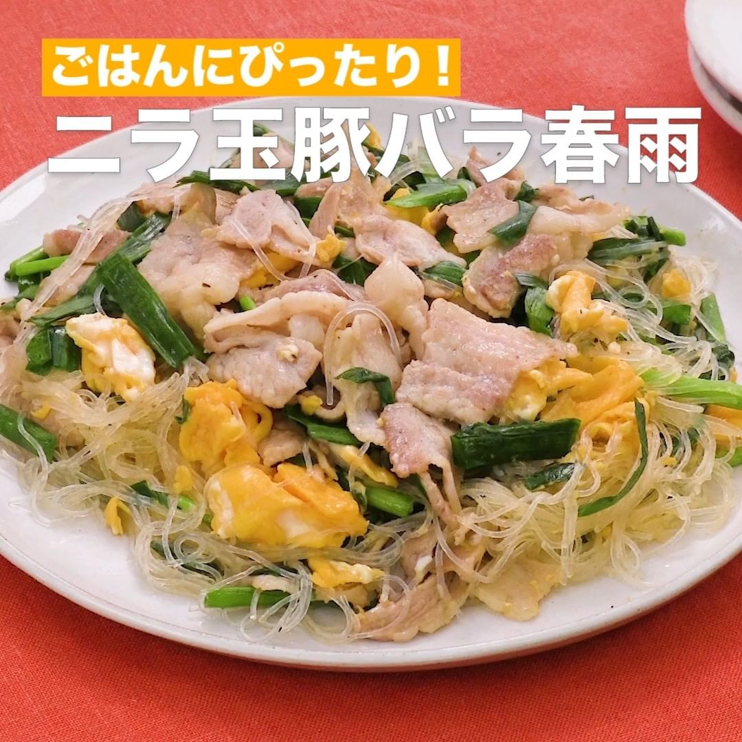 ④<ごはんにぴったり!ニラ玉豚バラ春雨>