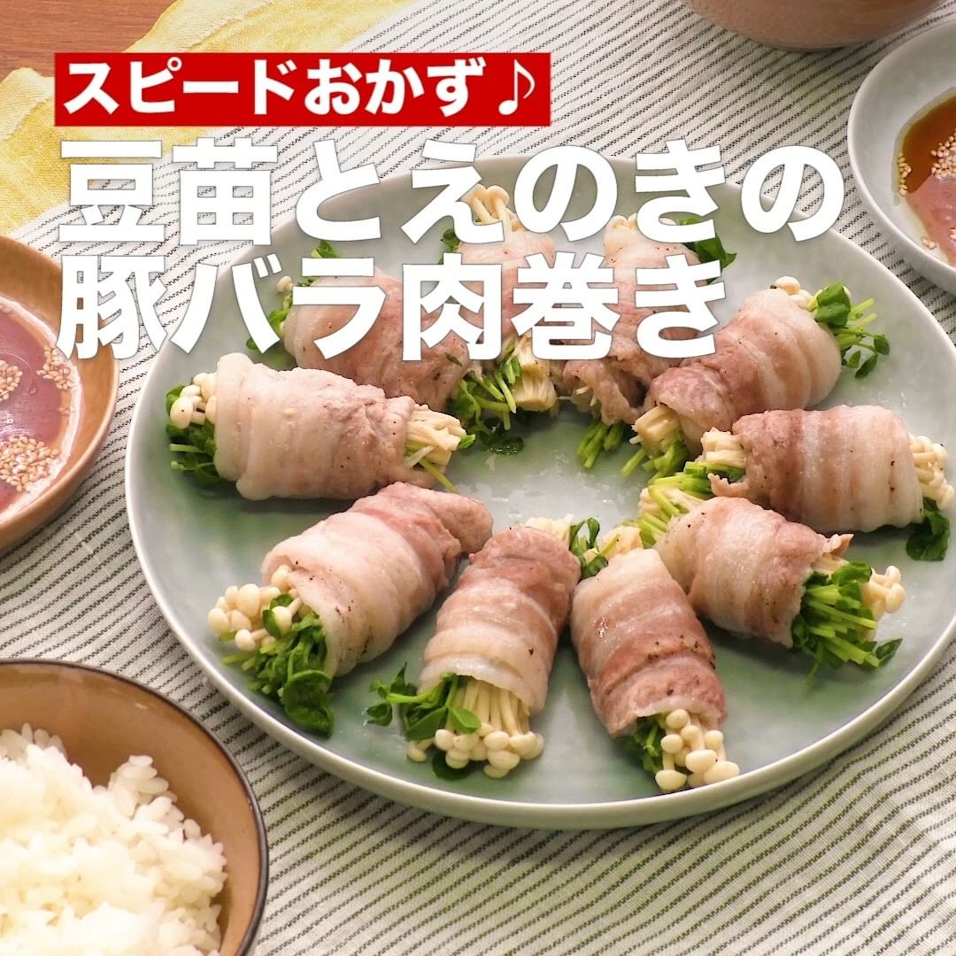 ⑦<スピードおかず♪豆苗とえのきの豚バラ肉巻き>