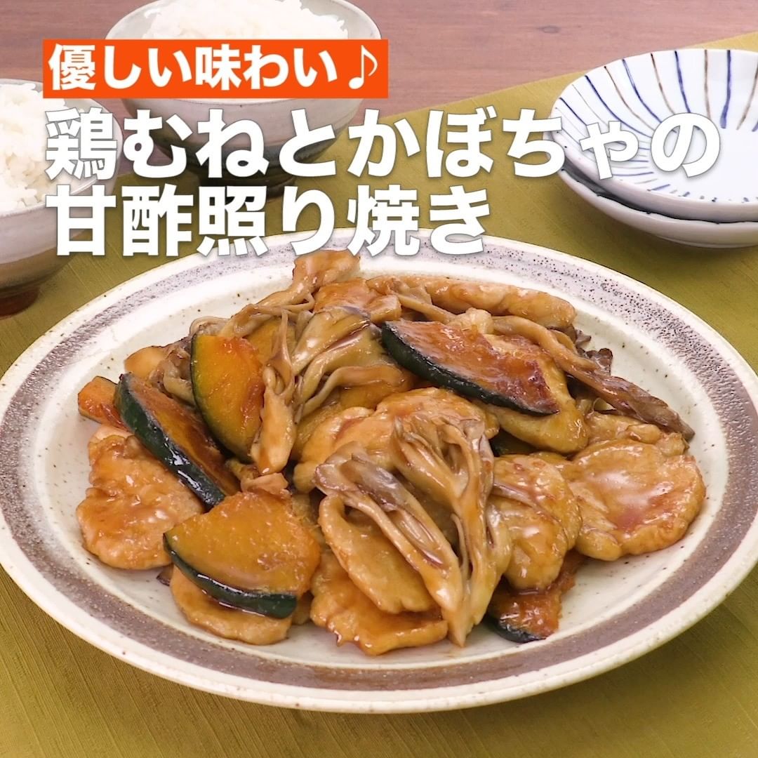 ①<優しい味わい♪鶏むねとかぼちゃの甘酢照り焼き>
