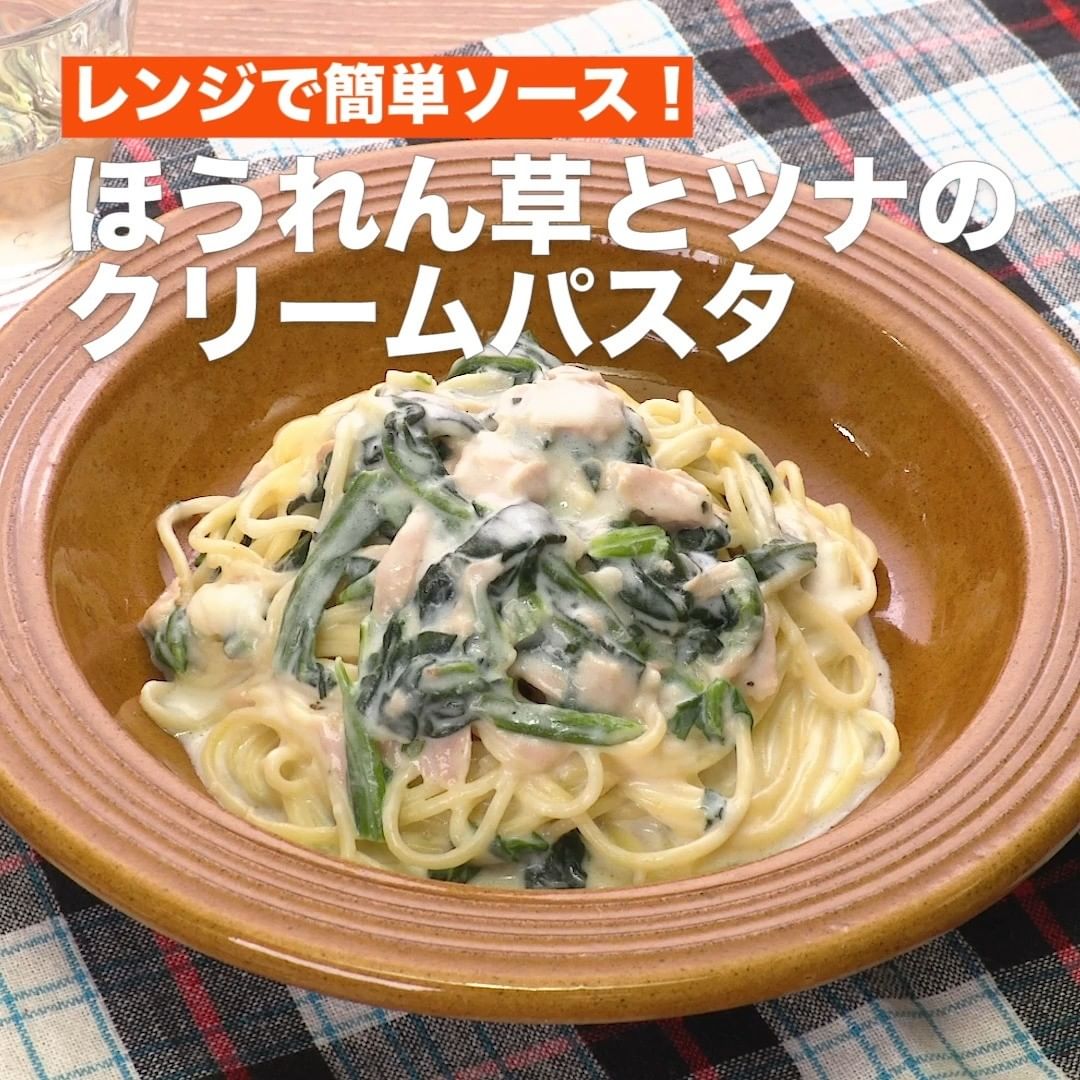 第4位<レンジで簡単ソース!ほうれん草とツナのクリームパスタ>