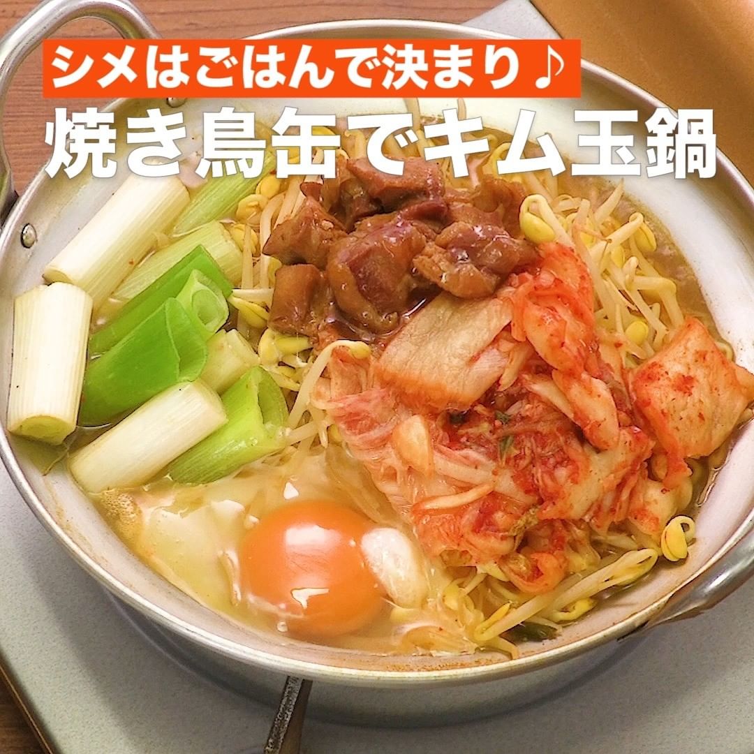 ③<シメはごはんで決まり♪焼き鳥缶でキム玉鍋>