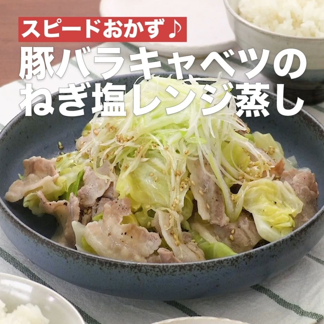 ⑥<スピードおかず♪豚バラキャベツのねぎ塩レンジ蒸し>