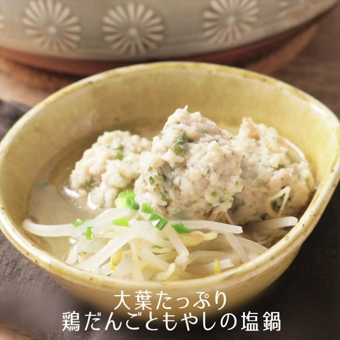⑤大葉たっぷり鶏だんごともやしの塩鍋