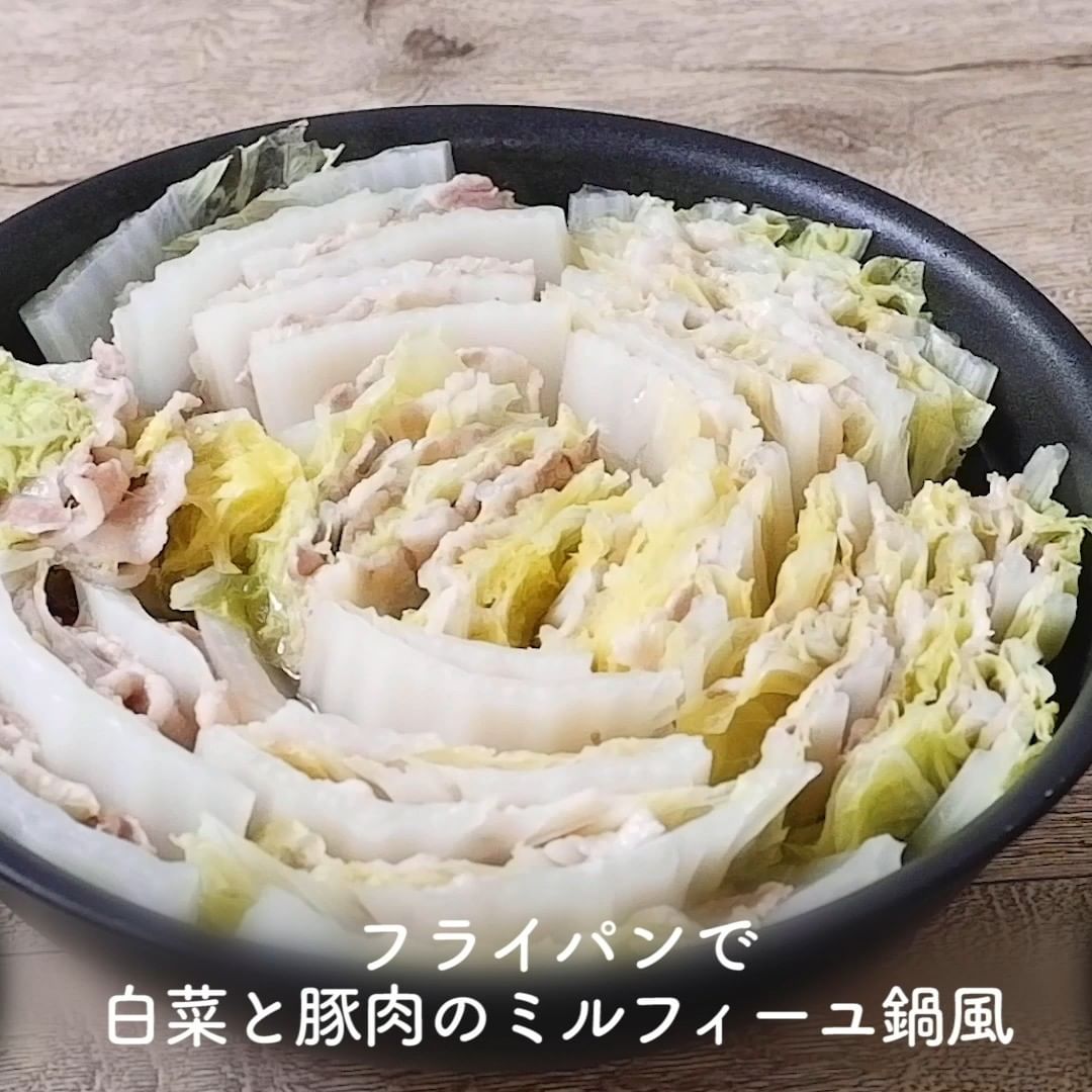 ①フライパンで 白菜と豚肉のミルフィーユ鍋風