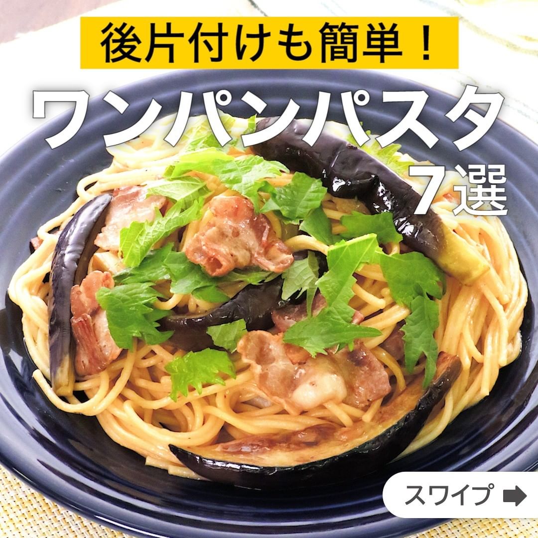 ①<ワンパン!なすと豚肉のバターポン酢パスタ>