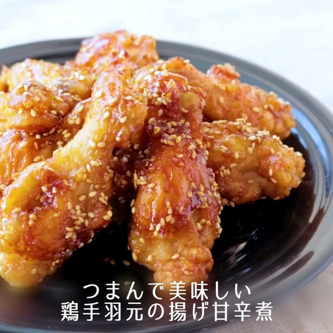 ①つまんで美味しい 鶏手羽元の揚げ甘辛煮