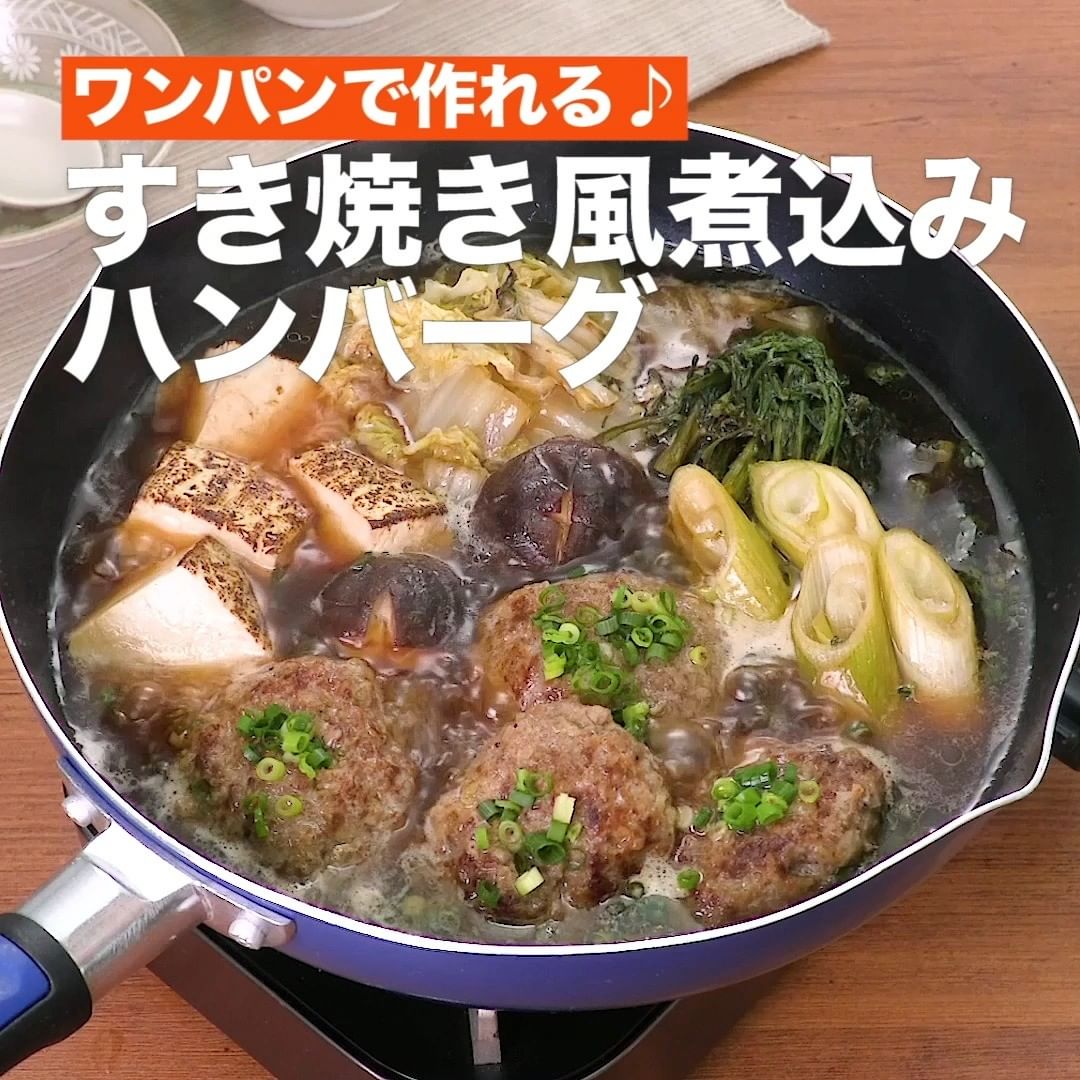 ③<ワンパンで作れる♪すき焼き風煮込みハンバーグ>