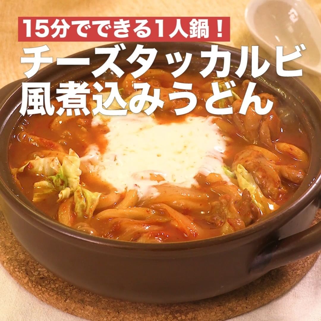 ⑤<15分でできる1人鍋!チーズタッカルビ風煮込みうどん>