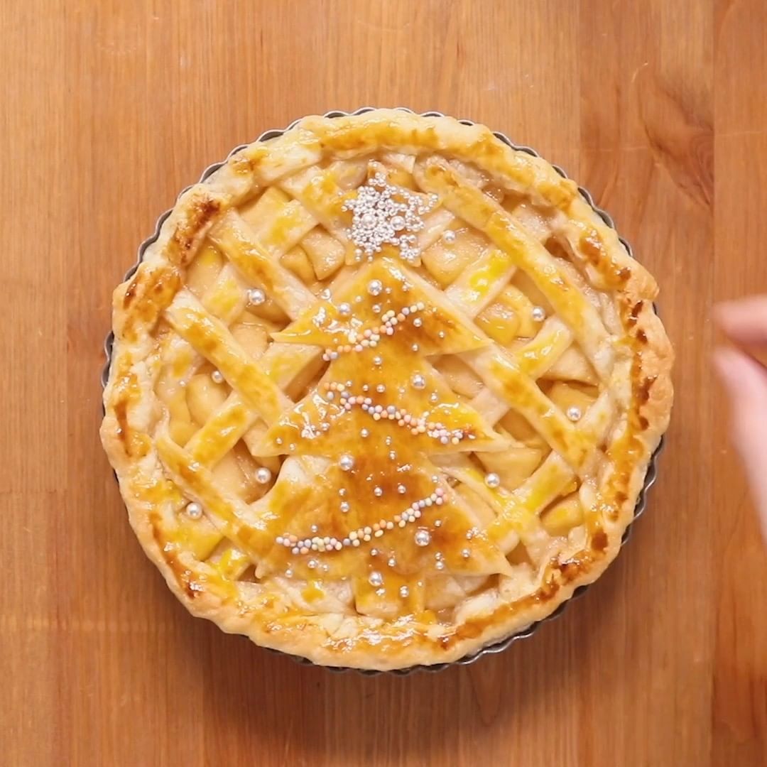 ツリーのデコレーションをした、クリスマスにおすすめなツリーのアップルパイ🎄