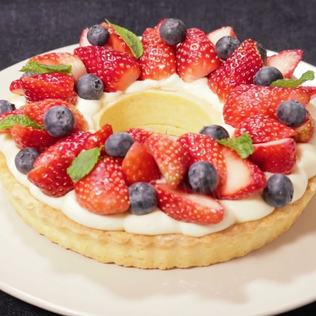 いつものタルトをちょっと工夫してクリスマス用に、リース型にしてみました🎅🏻