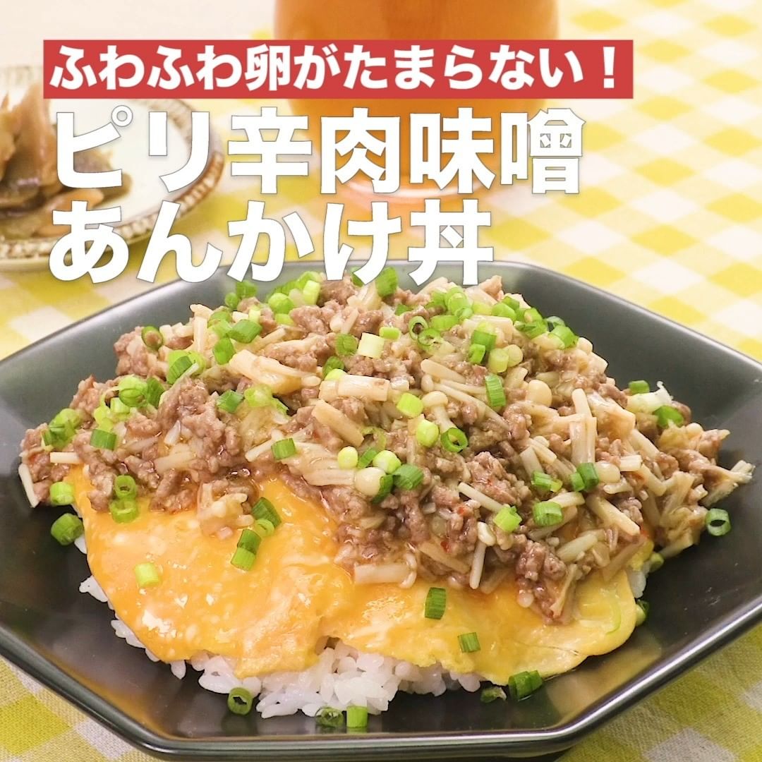 ②<ふわふわ卵がたまらない!ピリ辛肉味噌あんかけ丼>