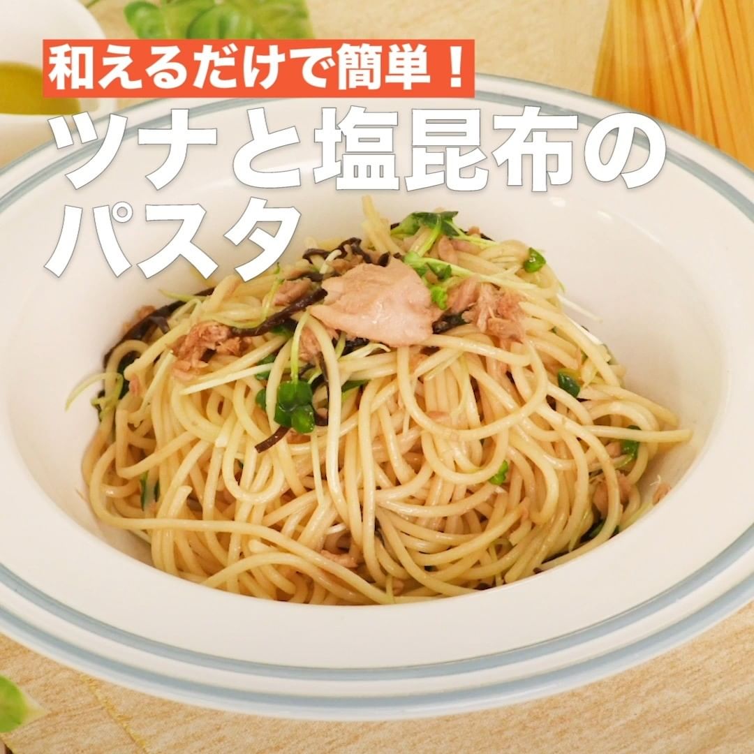 ④<和えるだけで簡単!ツナと塩昆布のパスタ>