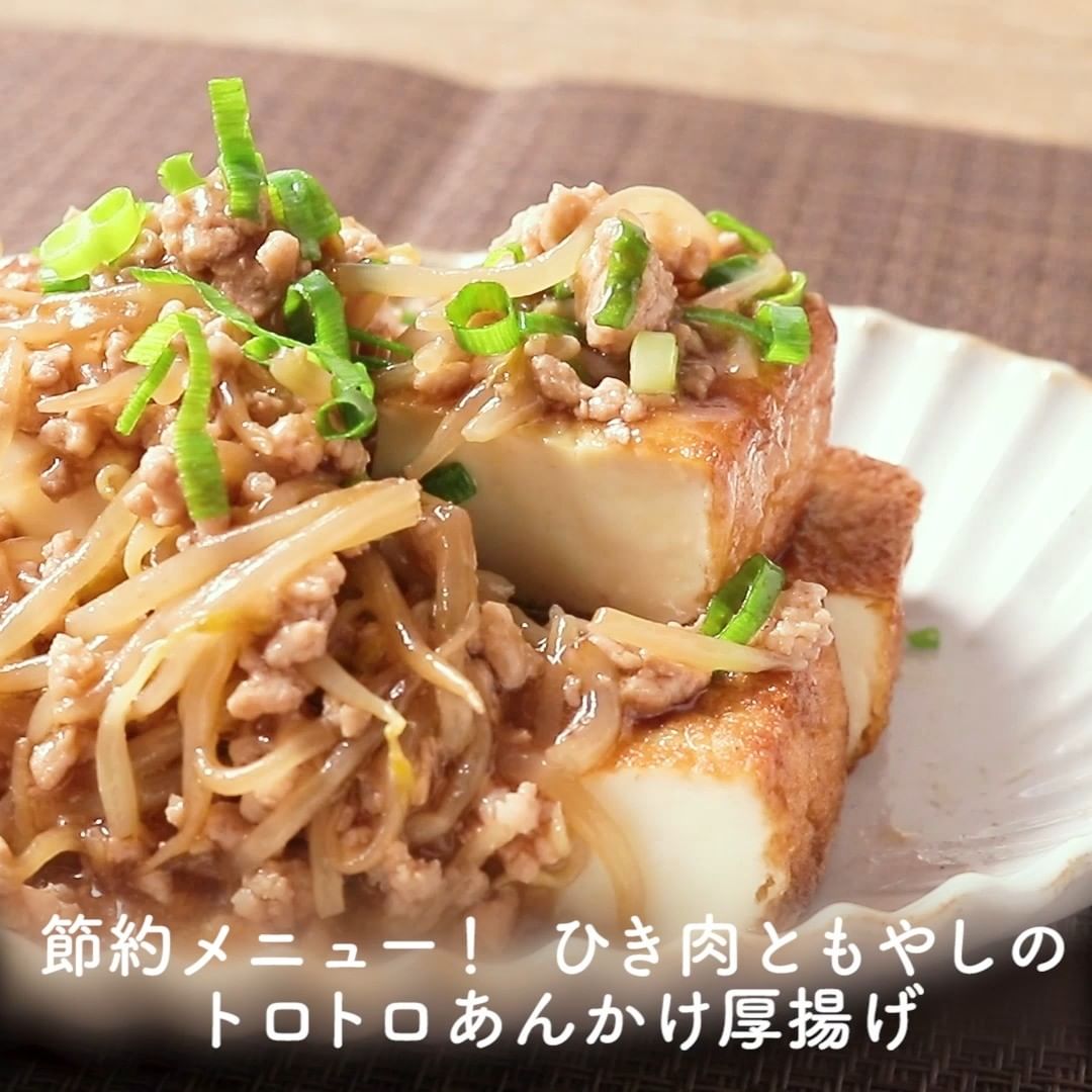 ①節約メニュー!ひき肉ともやしのトロトロあんかけ厚揚げ