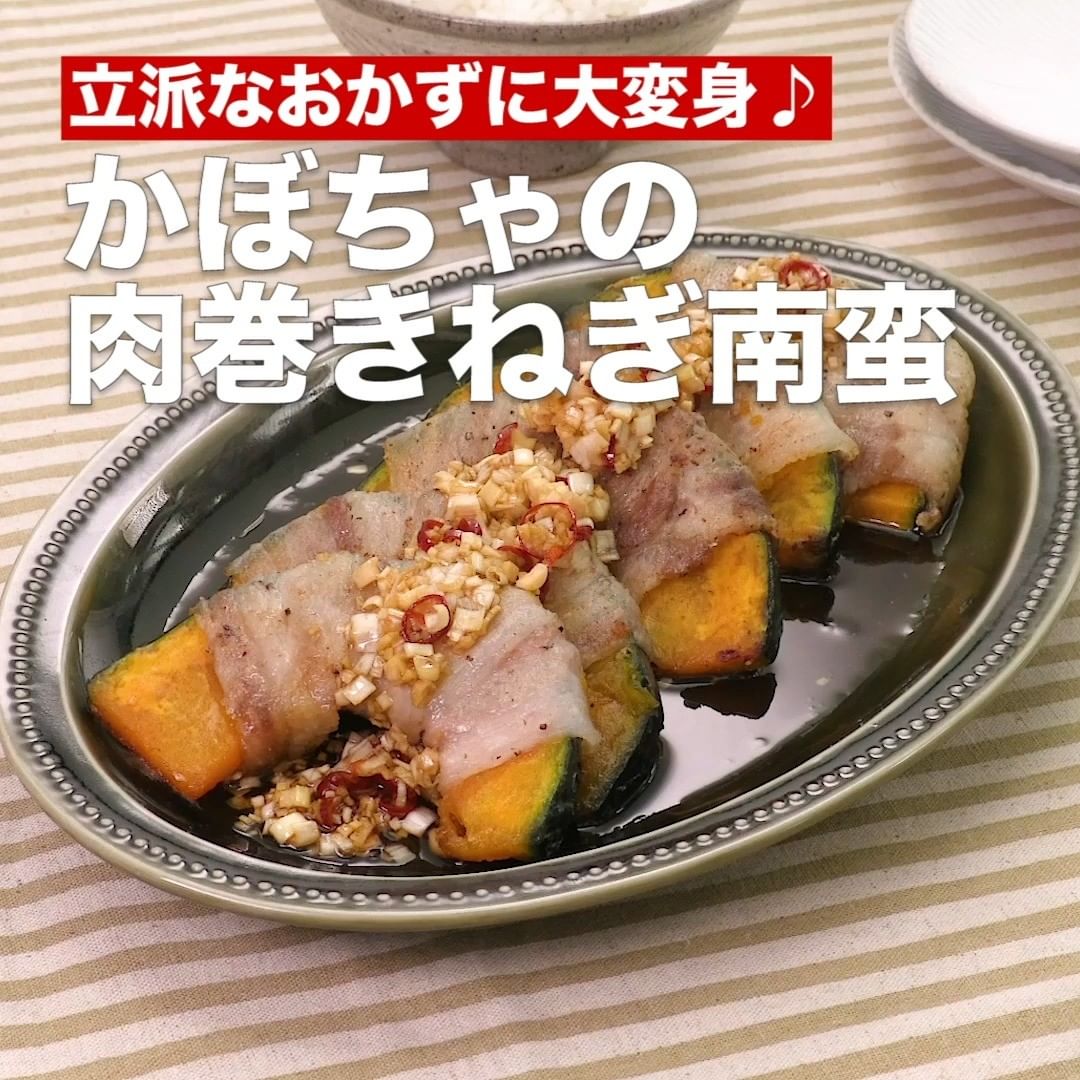 ④<立派なおかずに大変身♪かぼちゃの肉巻きねぎ南蛮>