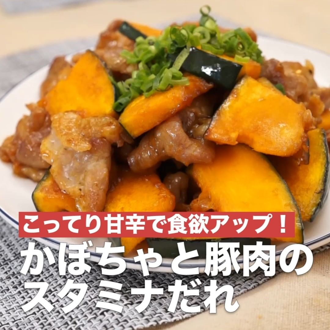 ⑥<こってり甘辛で食欲アップ!かぼちゃと豚肉のスタミナだれ>