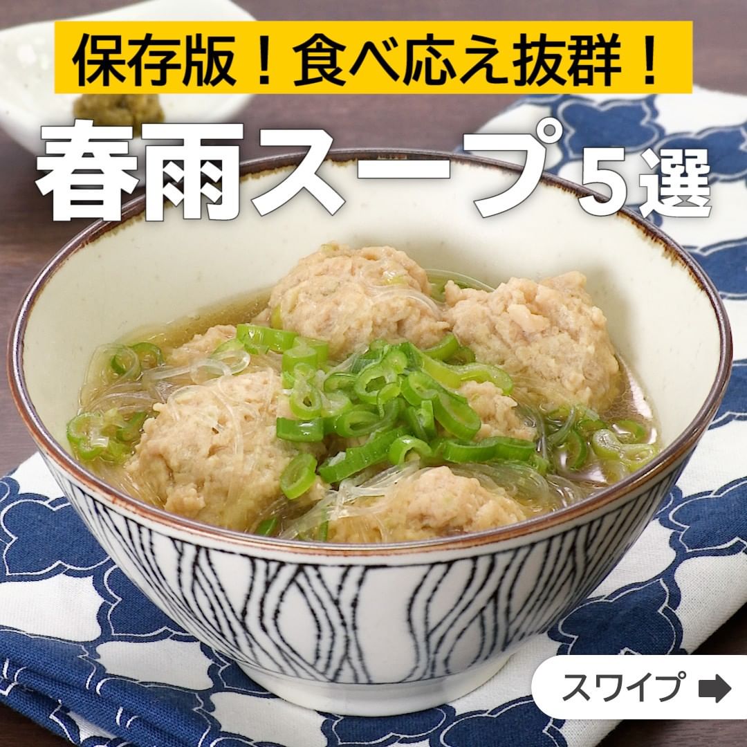 ①<食べ応え抜群♪ふわふわ鶏だんごの春雨スープ>
