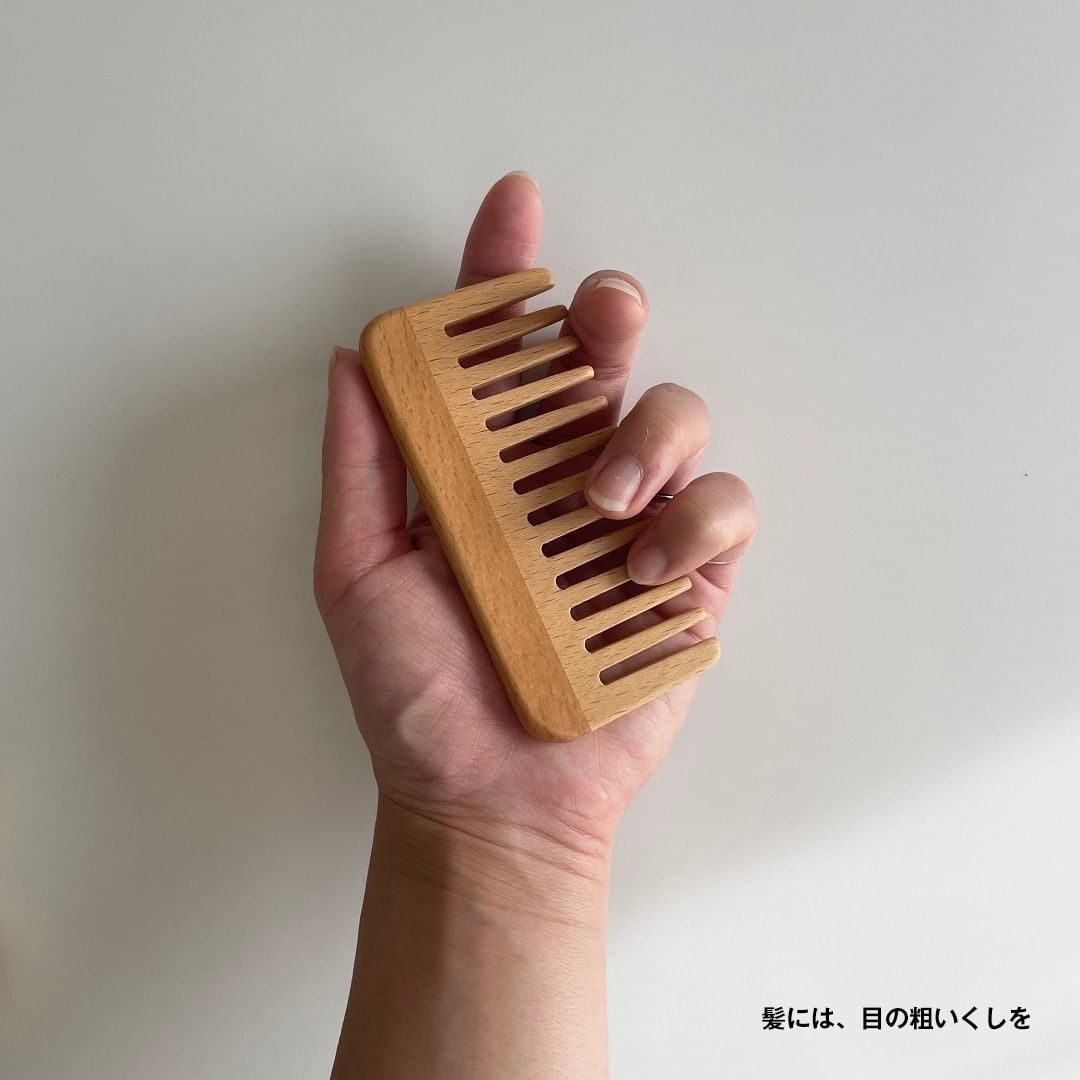 目が粗いブナ材でできたくしは、髪をすいても摩擦が起きにくく、静電気もおさえられます。