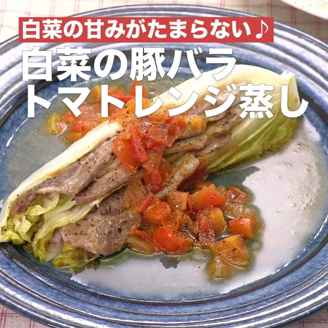 ④<白菜の甘みがたまらない♪白菜の豚バラトマトレンジ蒸し>