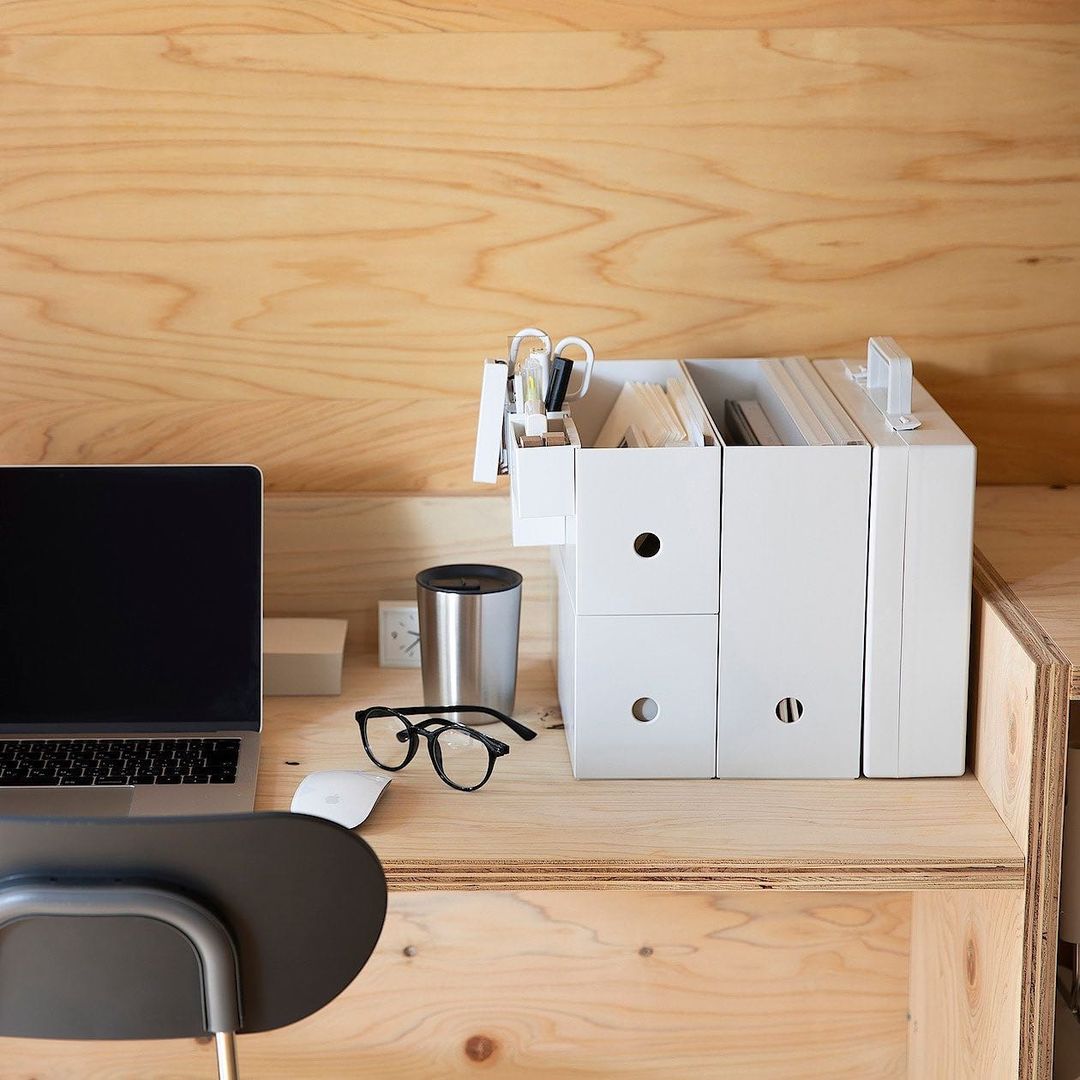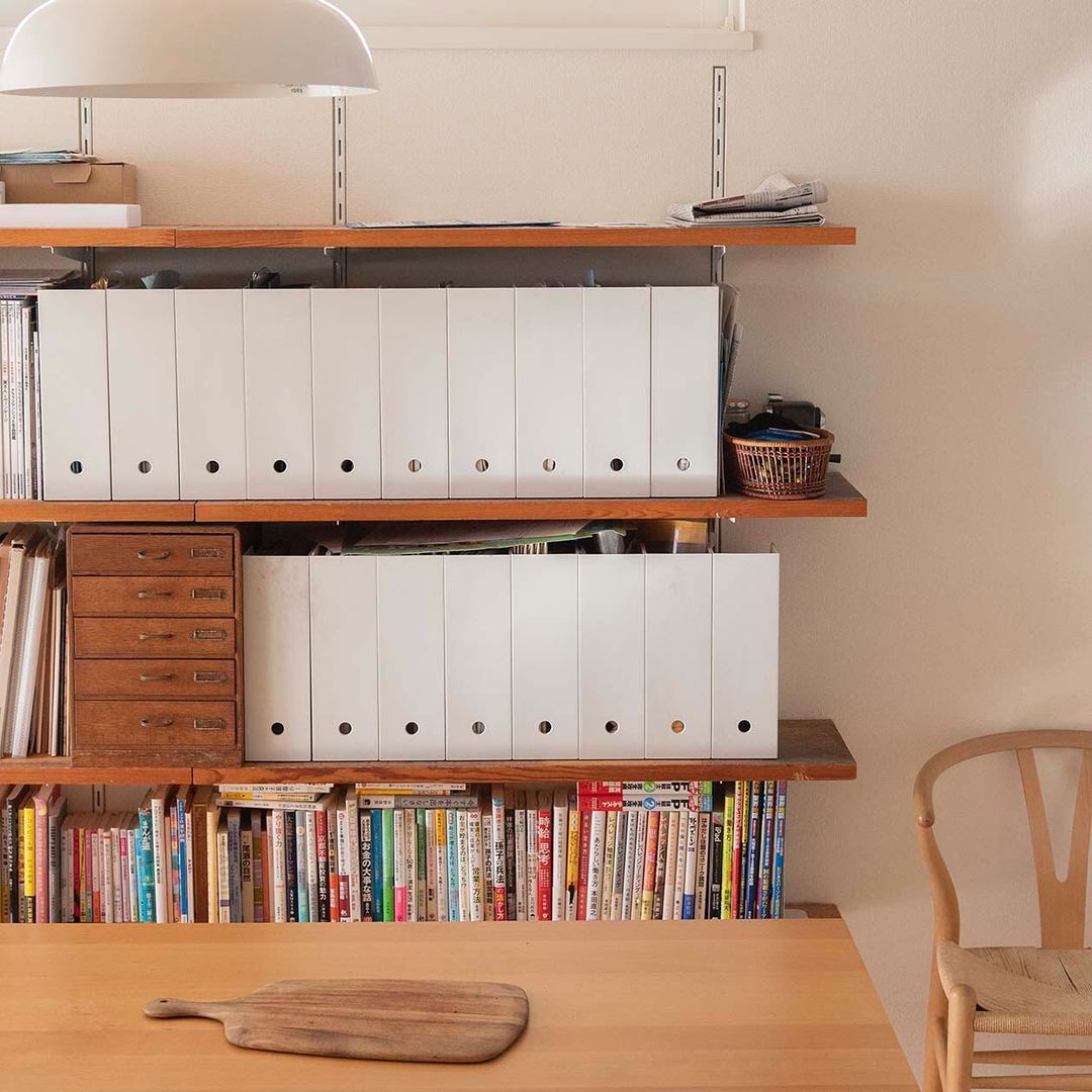ホワイトグレーのファイルボックスは、中身を隠してしまえるため、ごちゃつきを抑えたい場所の収納に取り入れると、空間をすっきりと整えてくれます。