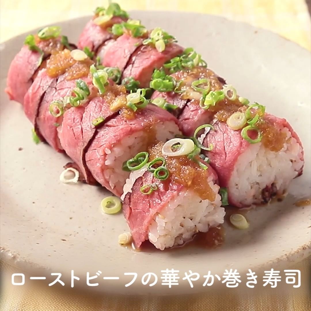 ④ローストビーフの華やか巻き寿司