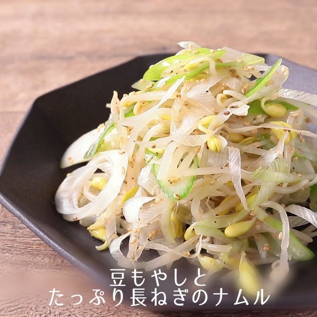 ①豆もやしとたっぷり長ねぎのナムル