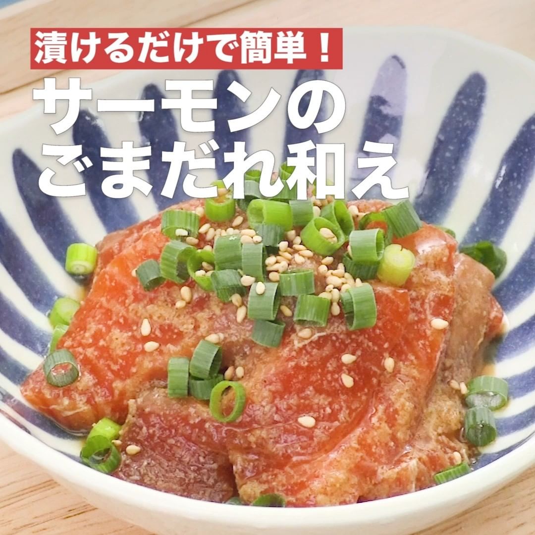⑤<漬けるだけで簡単!サーモンのごまだれ和え>