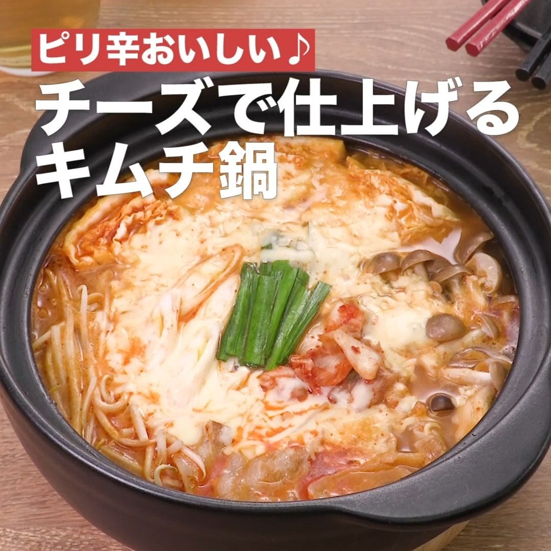 ピリッと辛いキムチつゆで煮込んだ具材にチーズが絶妙にからんでまろやかなおいしさに♪市販の鍋つゆを使って簡単に仕上げるので忙しい日の夕食におすすめのレシピです。残ったつゆに中華麺やごはんを加えて〆まで楽しみましょう!