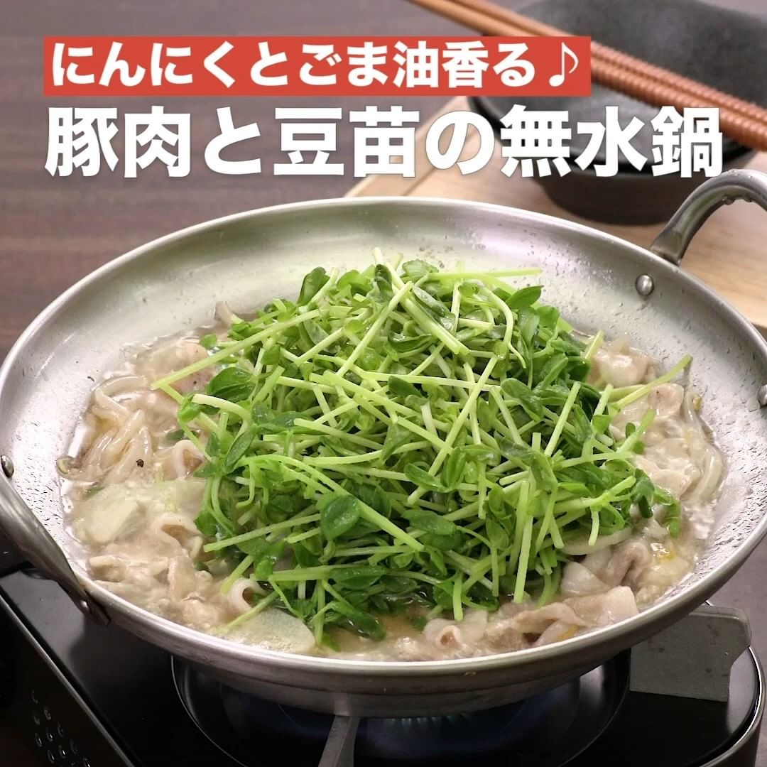 ⑤<にんにくとごま油香る♪豚肉と豆苗の無水鍋>