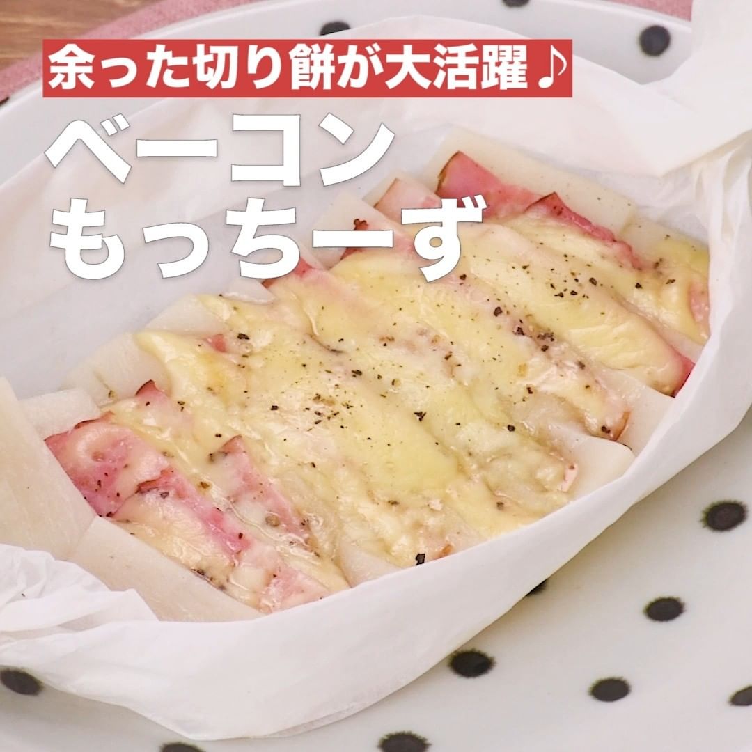 ①<余った切り餅が大活躍♪ベーコンもっちーず>