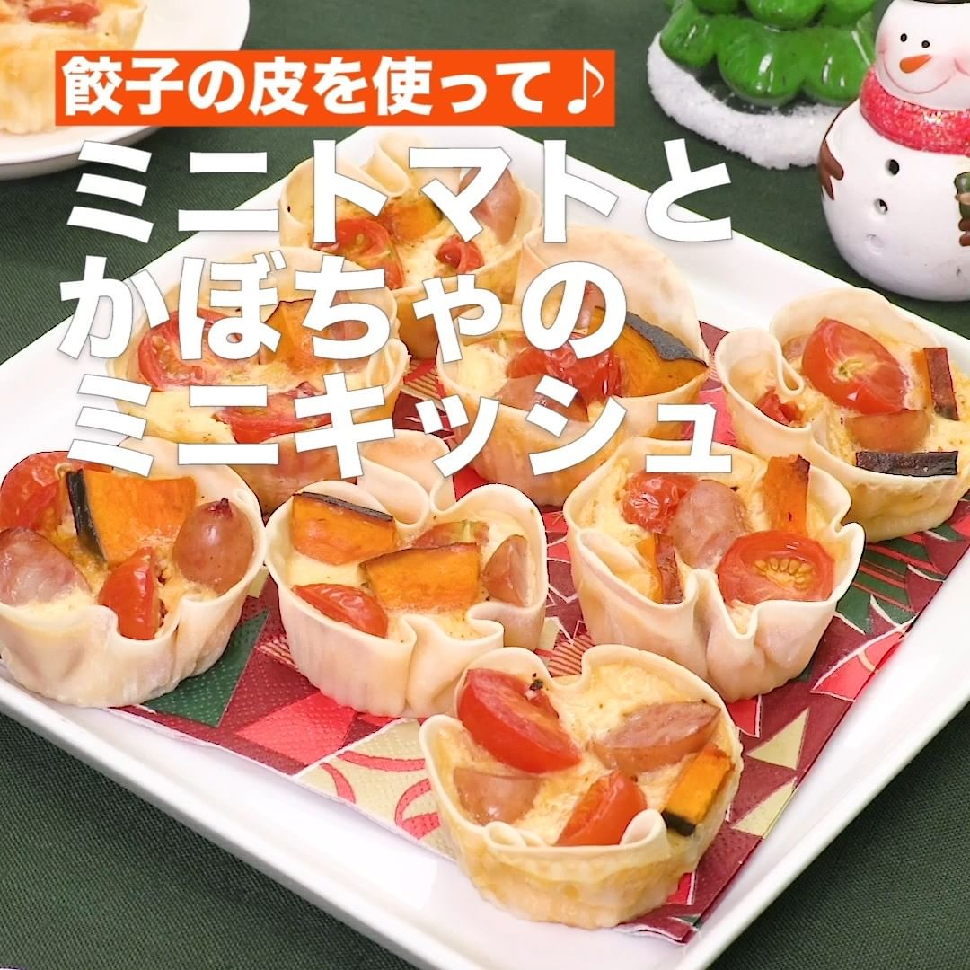 ④<餃子の皮を使って♪ミニトマトとかぼちゃのミニキッシュ>