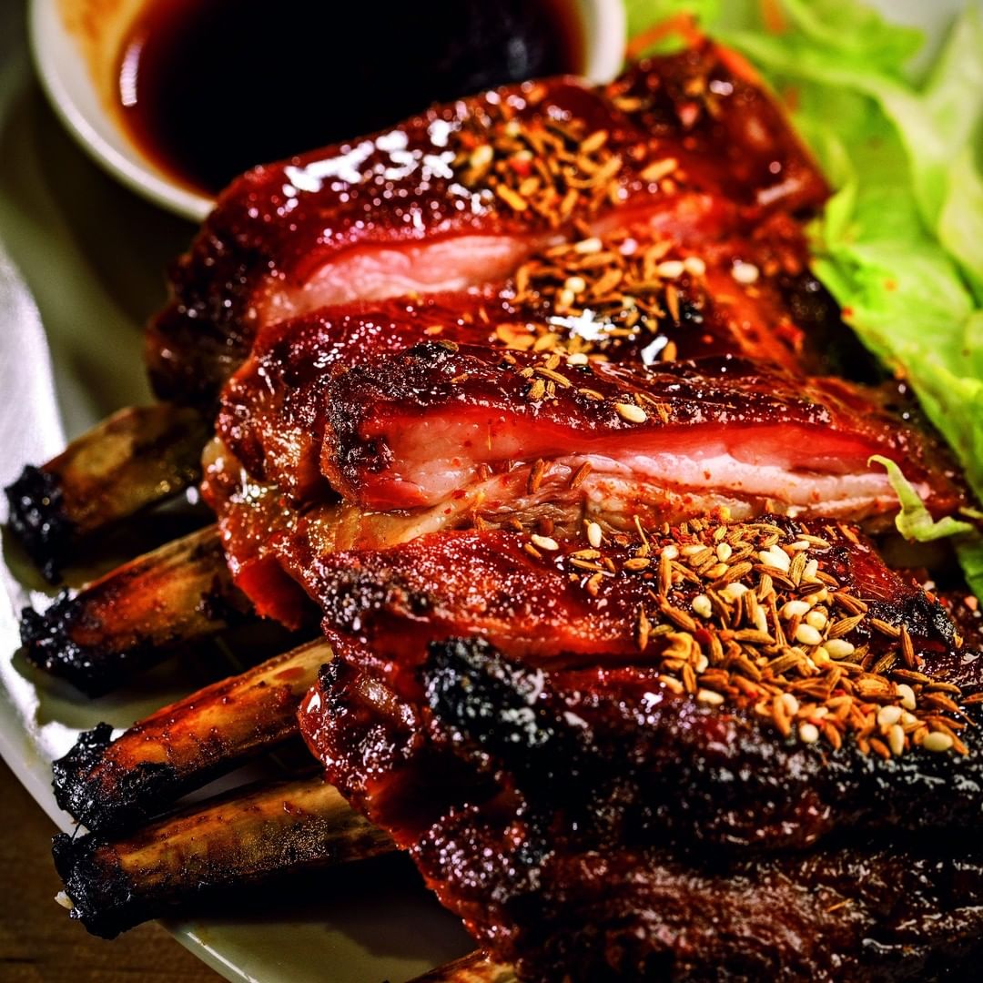 自社工場で釜焼きしたラムに、クミンや胡麻、後を引くスパイシーな唐辛子がアクセント。