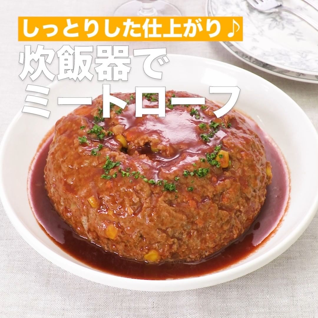 パウンド型を使わず、簡単に食べごたえ抜群のミートローフを炊飯器で作ってみませんか?ソースは簡単にレンジで作ります!おもてなしにもおすすめです♪