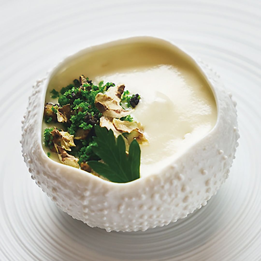 店のスペシャリテは以前と変わらない「北海道根室 雲丹×菊芋」。