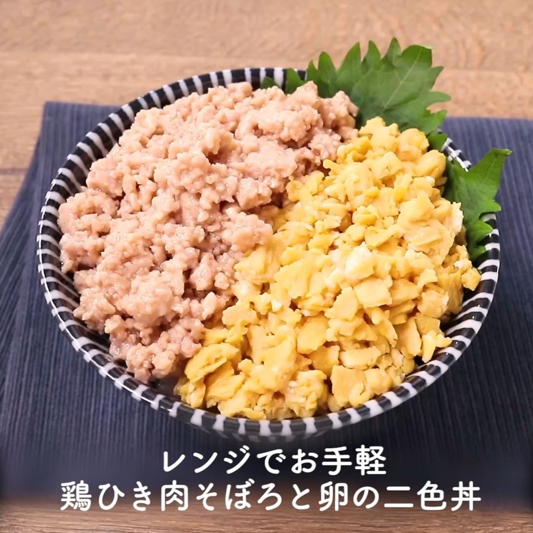 ③レンジでお手軽 鶏ひき肉そぼろと卵の二色丼
