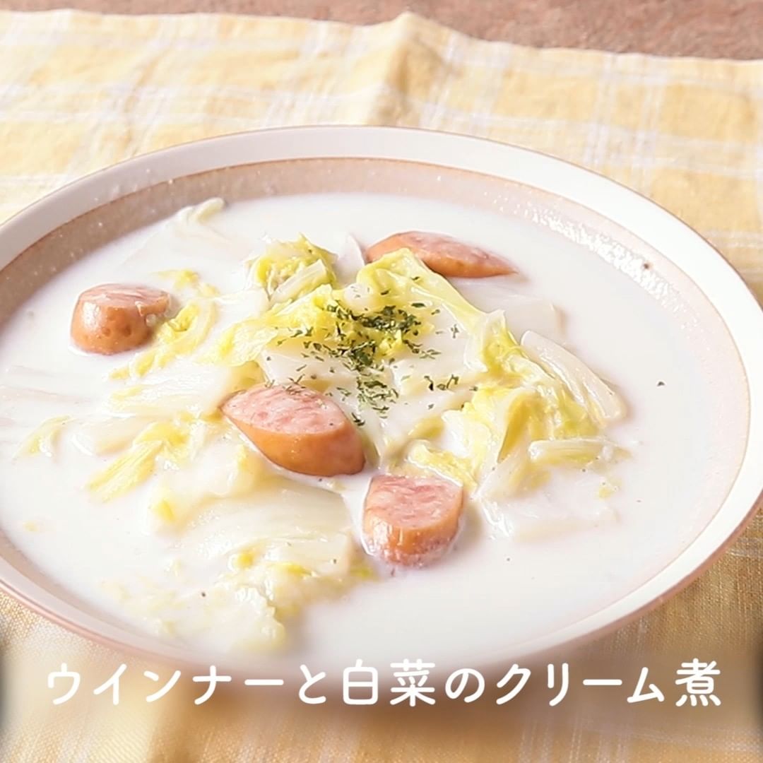 ①ウインナーと白菜のクリーム煮