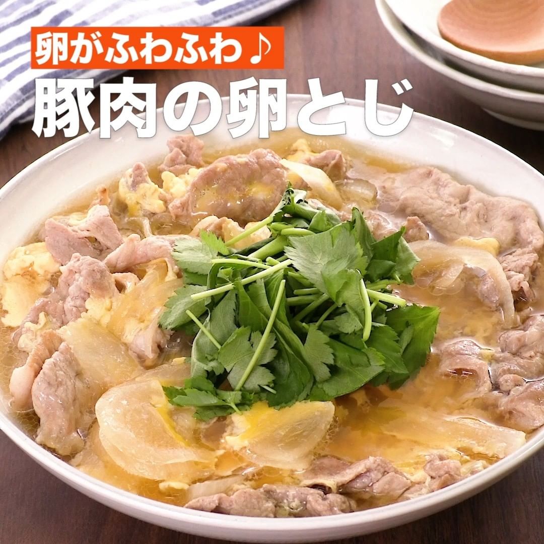 (3)2に溶き卵をまわし入れ、半熟状になったら火を止め、ふたをして1分程蒸らす。