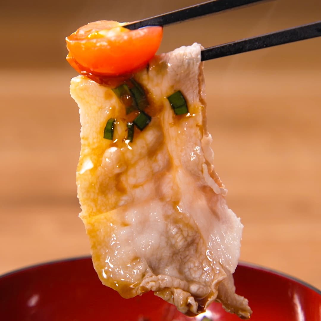 ⑤鍋に切った具材と豚バラ肉をしゃぶしゃぶし、お好みのたれにつけて食べる!