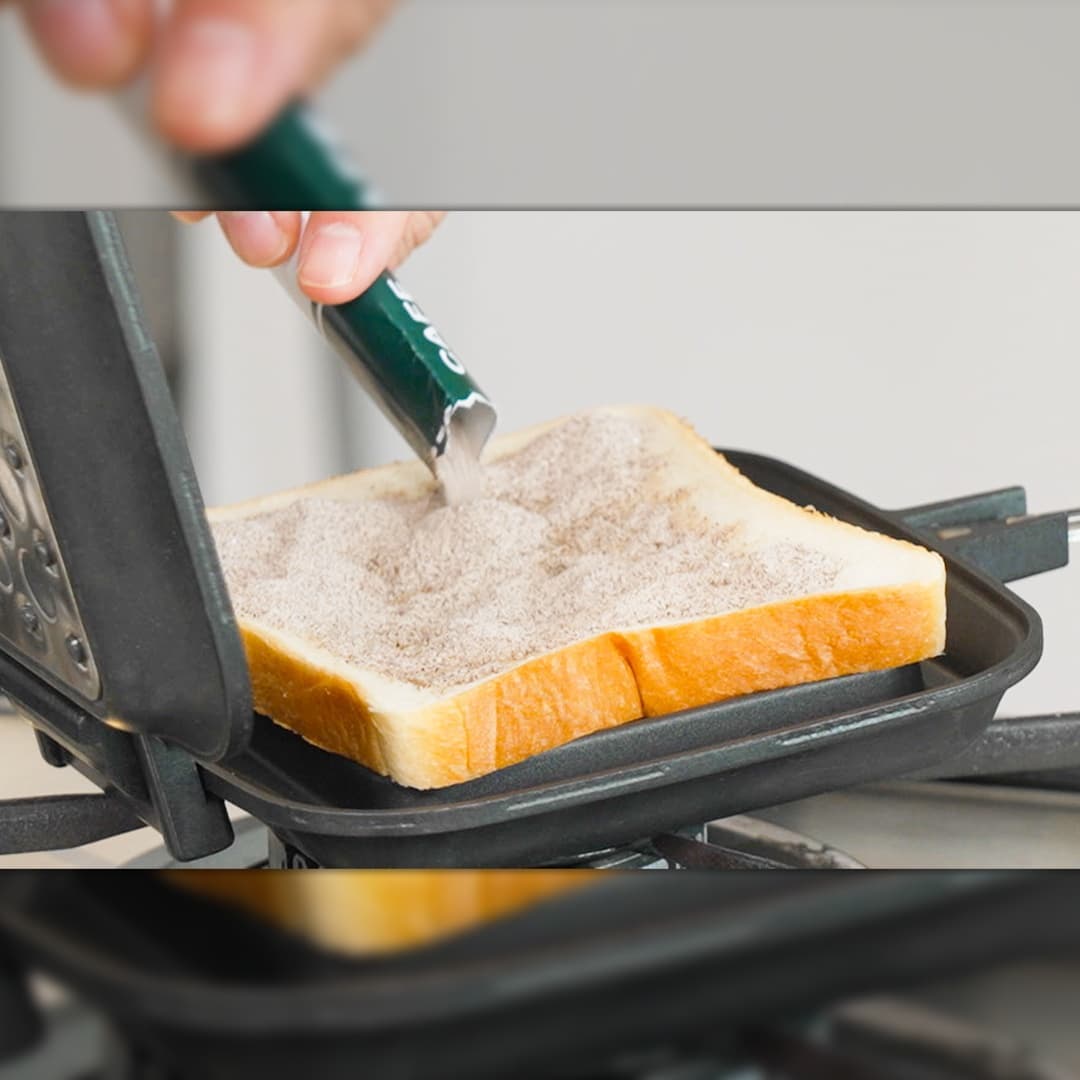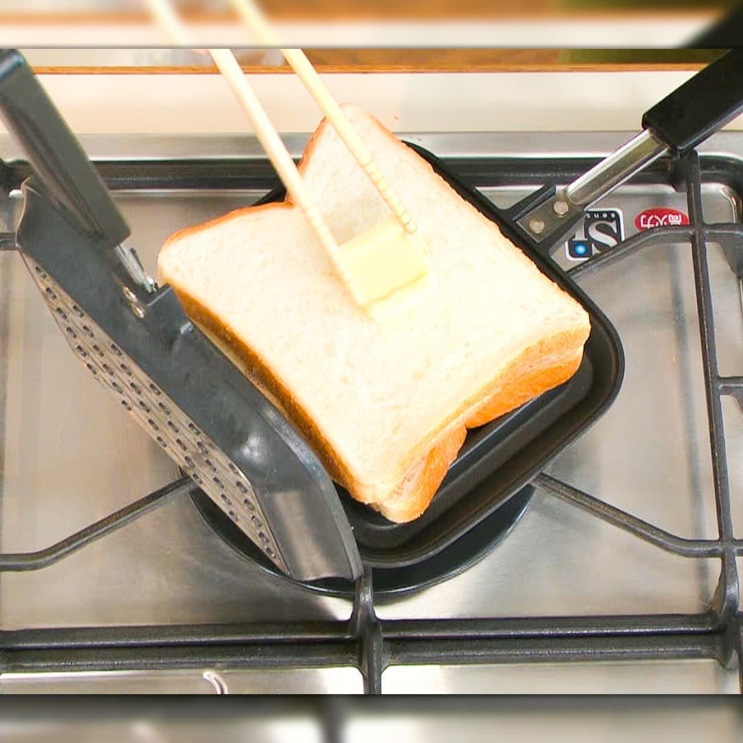 ⑥バター10gを上にのせ、ホットサンドメーカーを閉じる