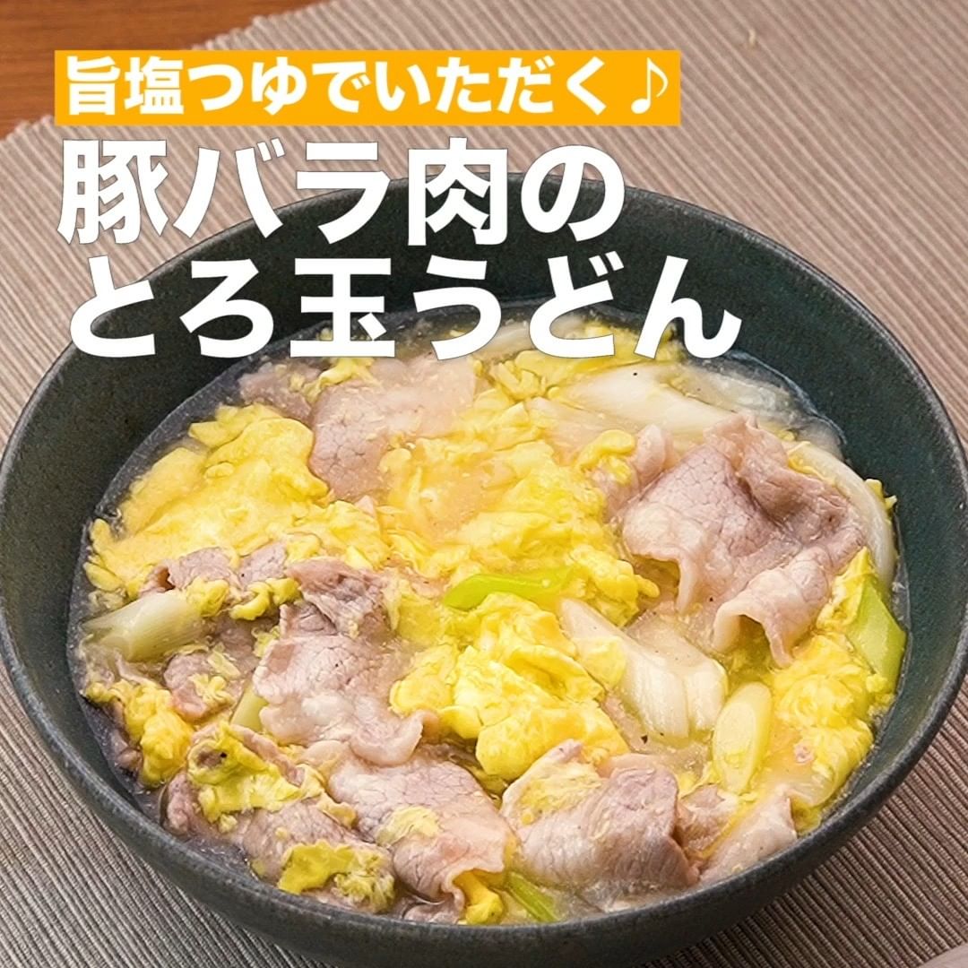 ③<旨塩つゆでいただく♪豚バラ肉のとろ玉うどん>