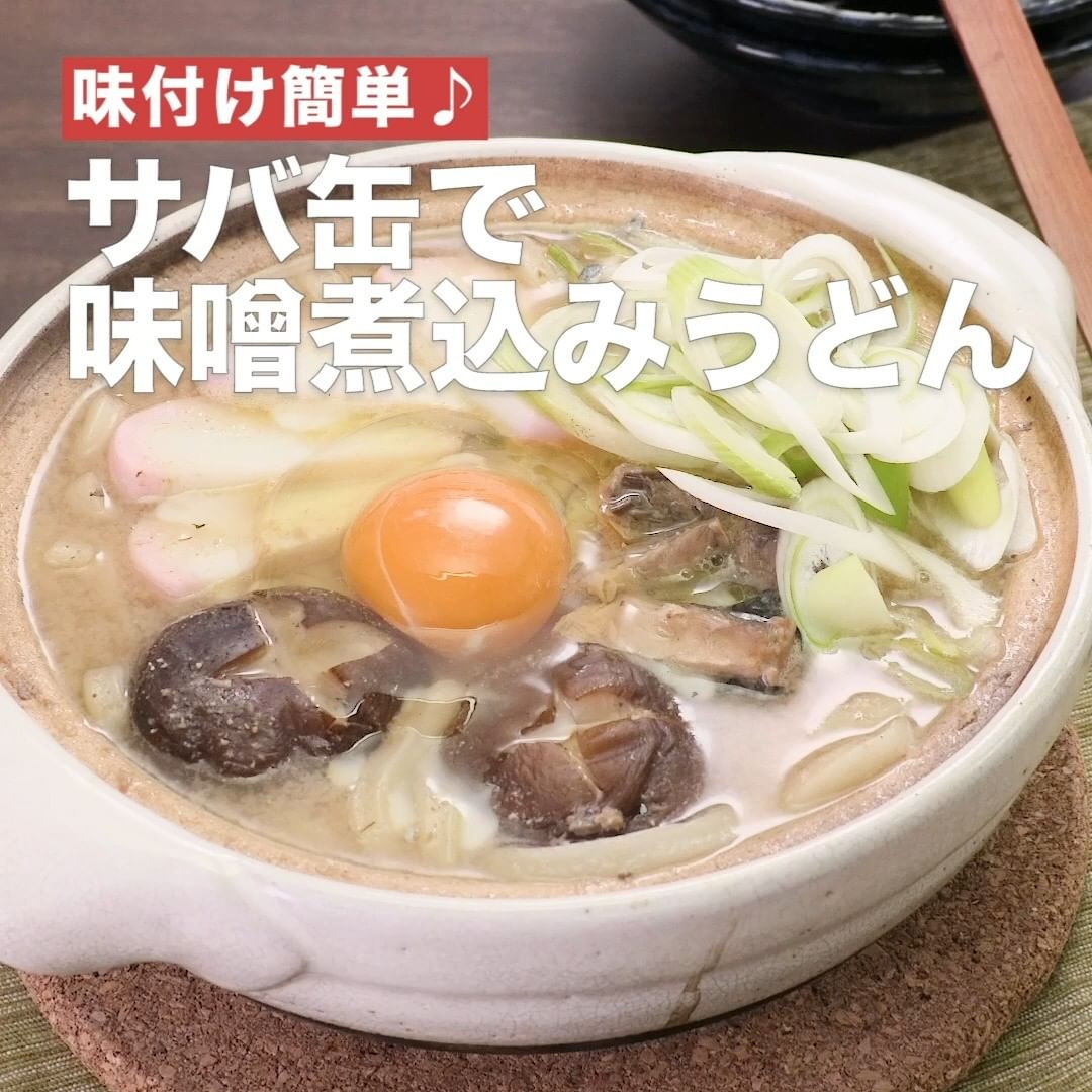 ⑥<味付け簡単♪サバ缶で味噌煮込みうどん>