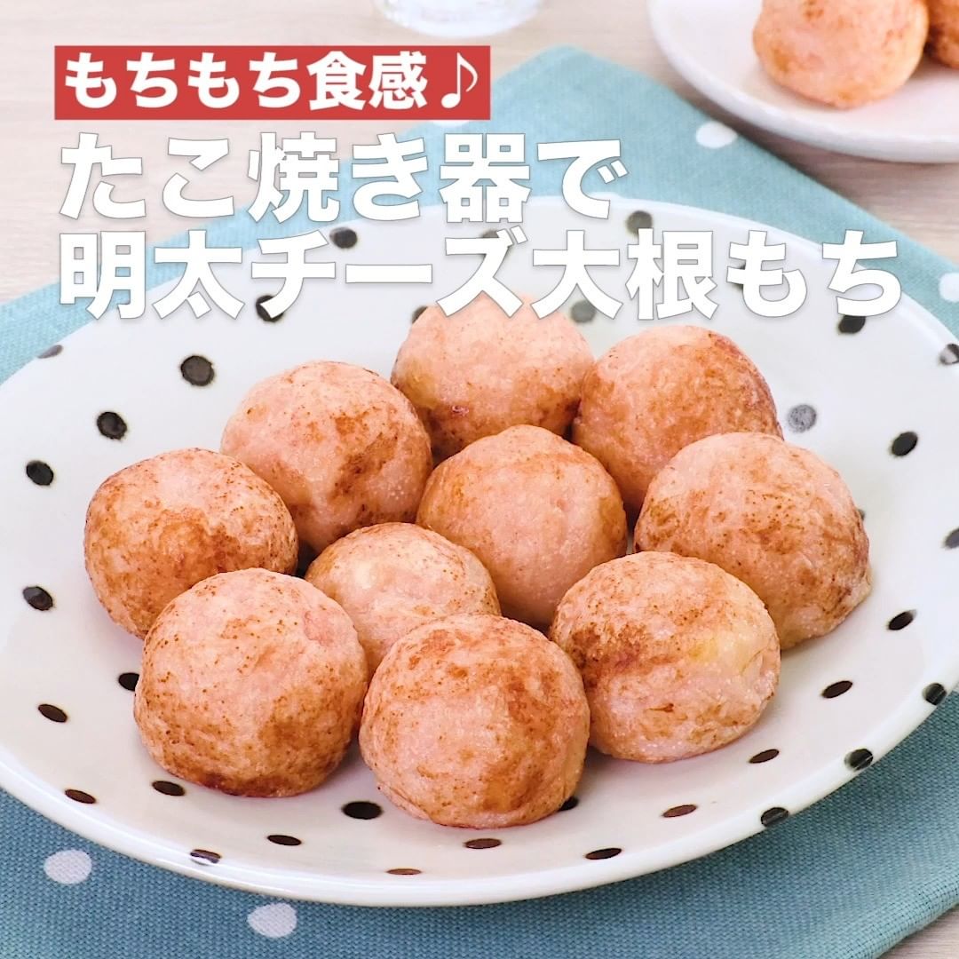 ①<もちもち食感♪たこ焼き器で明太チーズ大根もち>
