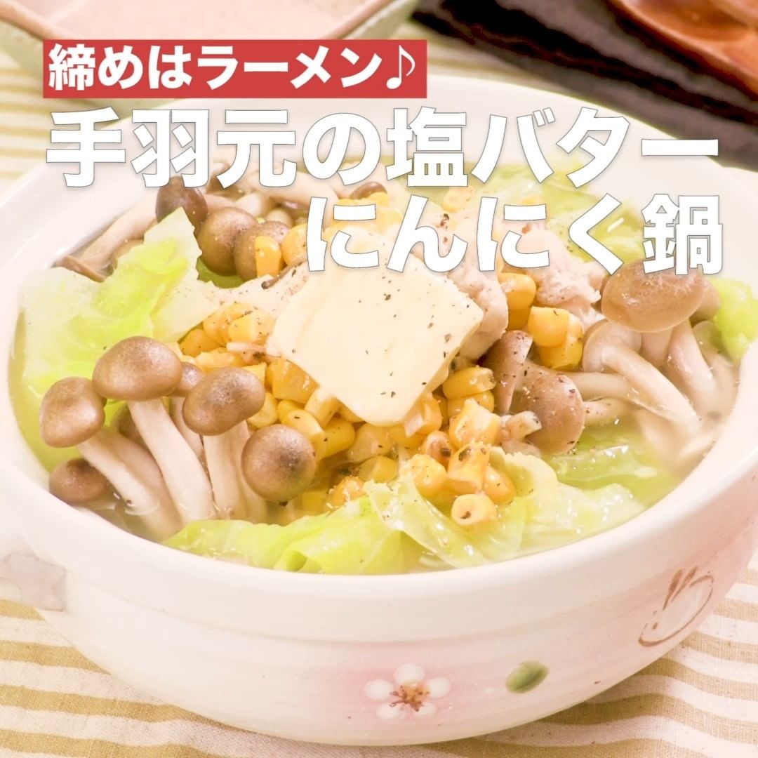 ③<締めはラーメン♪手羽元の塩バターにんにく鍋>