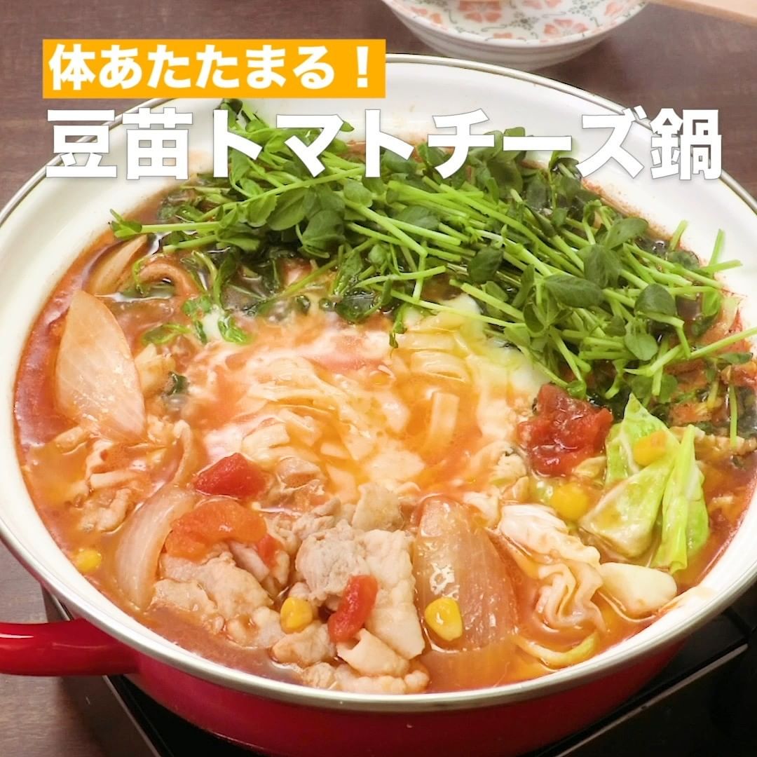 ④<体あたたまる!豆苗トマトチーズ鍋>