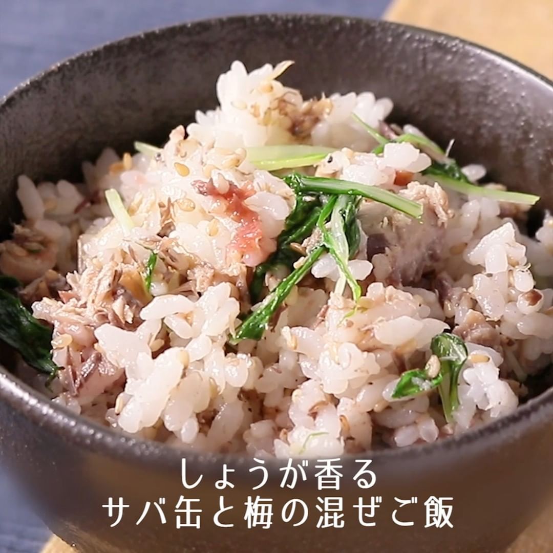 ②しょうが香る サバ缶と梅の混ぜご飯
