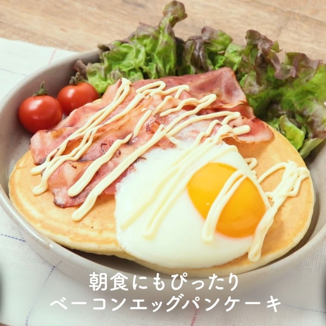 ①朝食にもぴったり ベーコンエッグパンケーキ