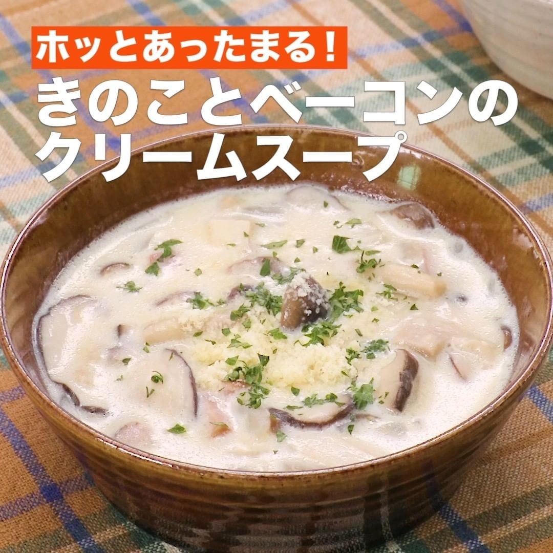④<ホッとあったまる!きのことベーコンのクリームスープ>