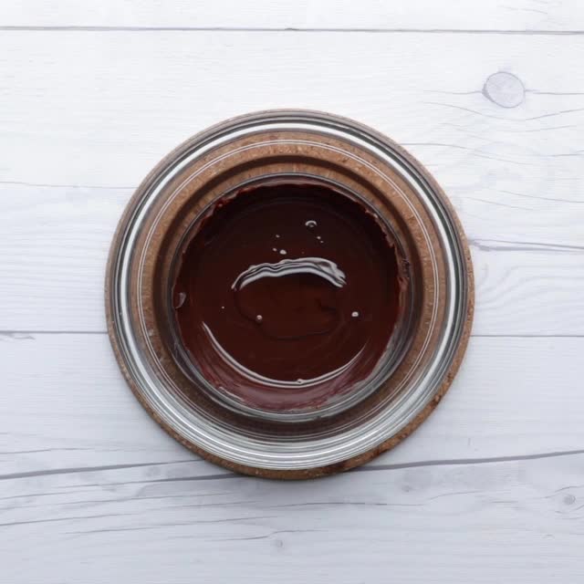 6.コーティング用のチョコレートを湯煎(45℃程度)にかけて溶かし、サラダ油を加えてなめらかになるまで混ぜる。⁣