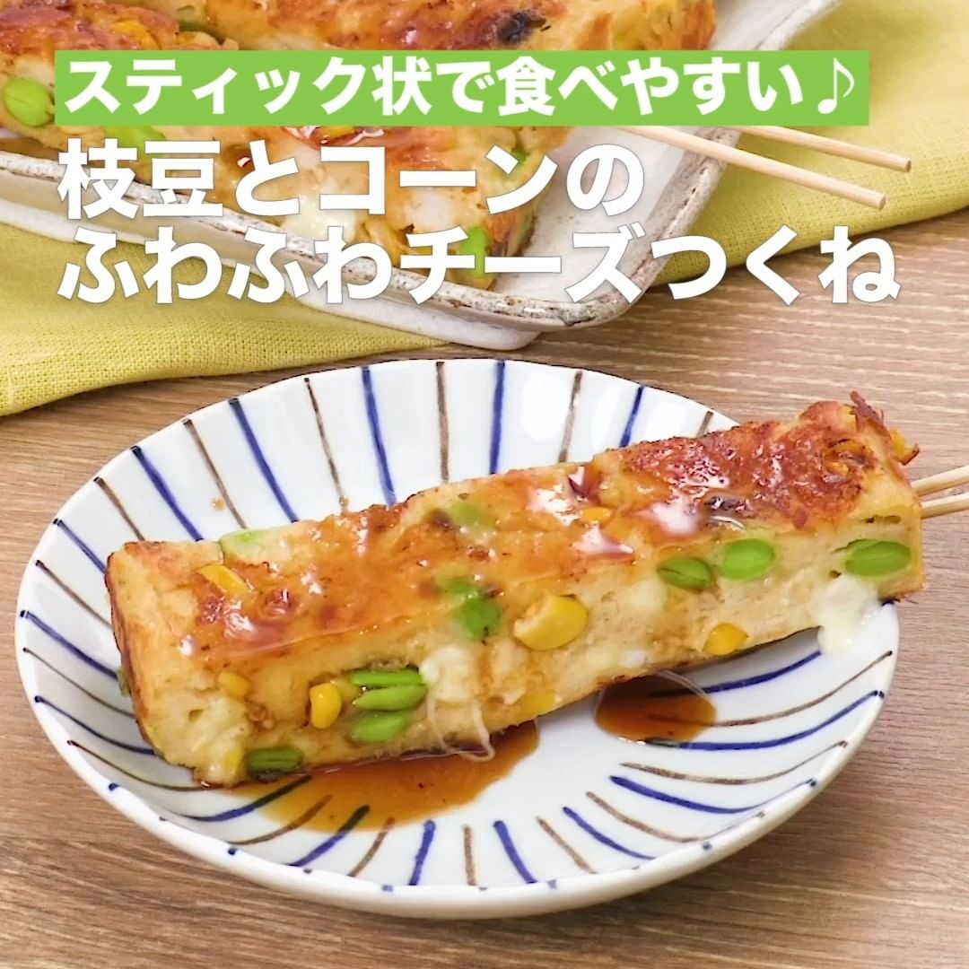 ⑤<スティック状で食べやすい♪枝豆とコーンのふわふわチーズつくね>