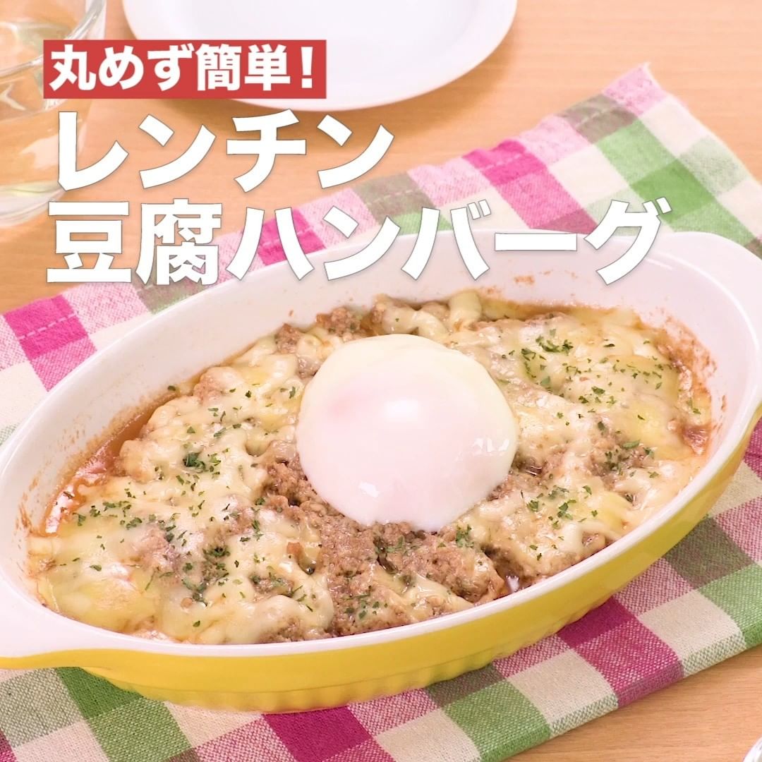⑥<丸めず簡単!レンチン豆腐ハンバーグ>